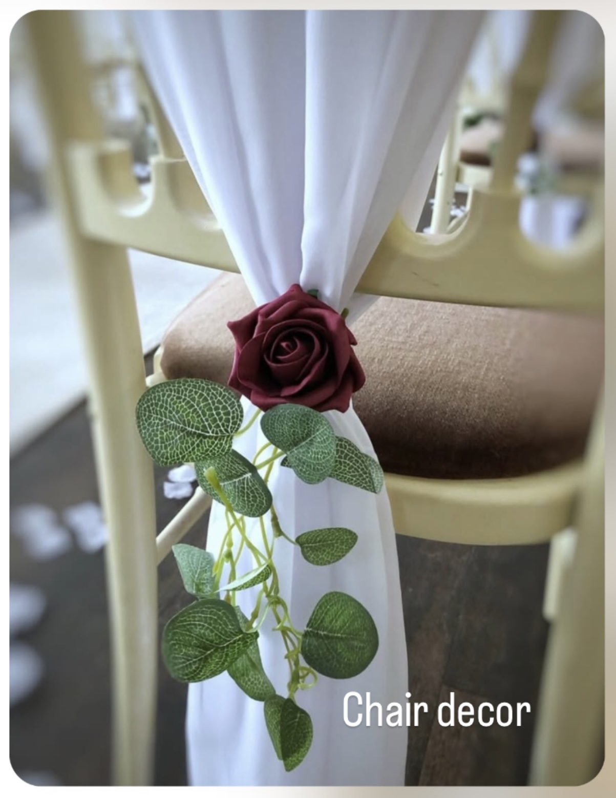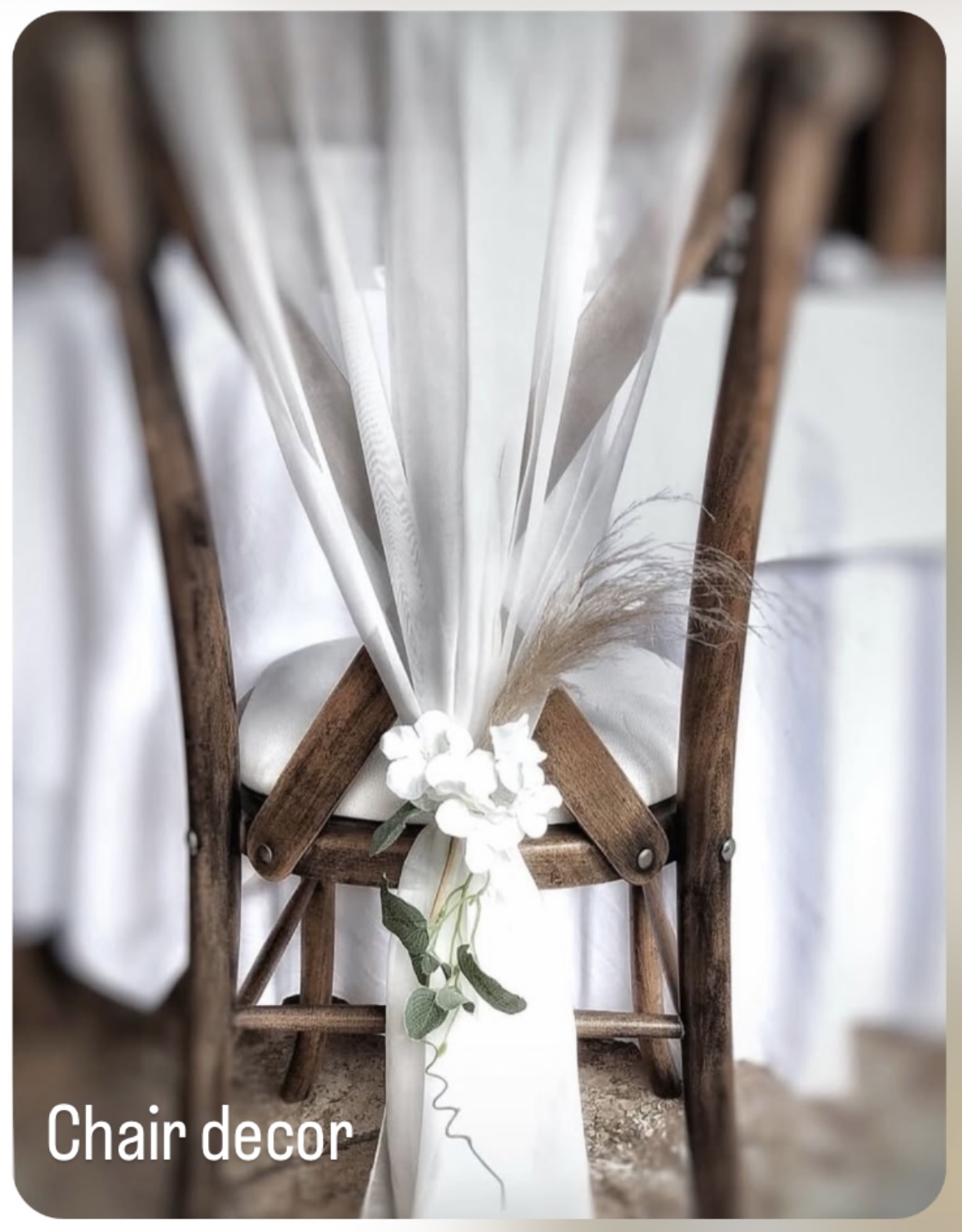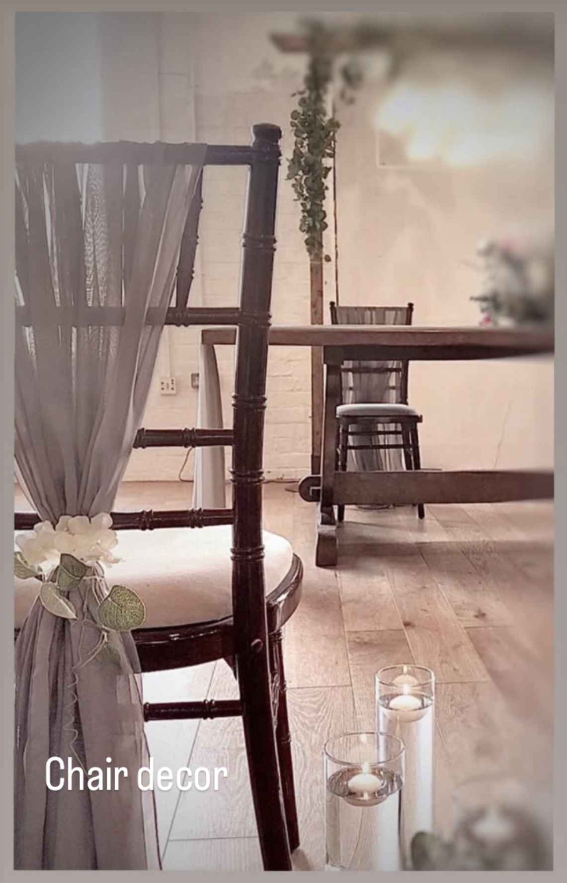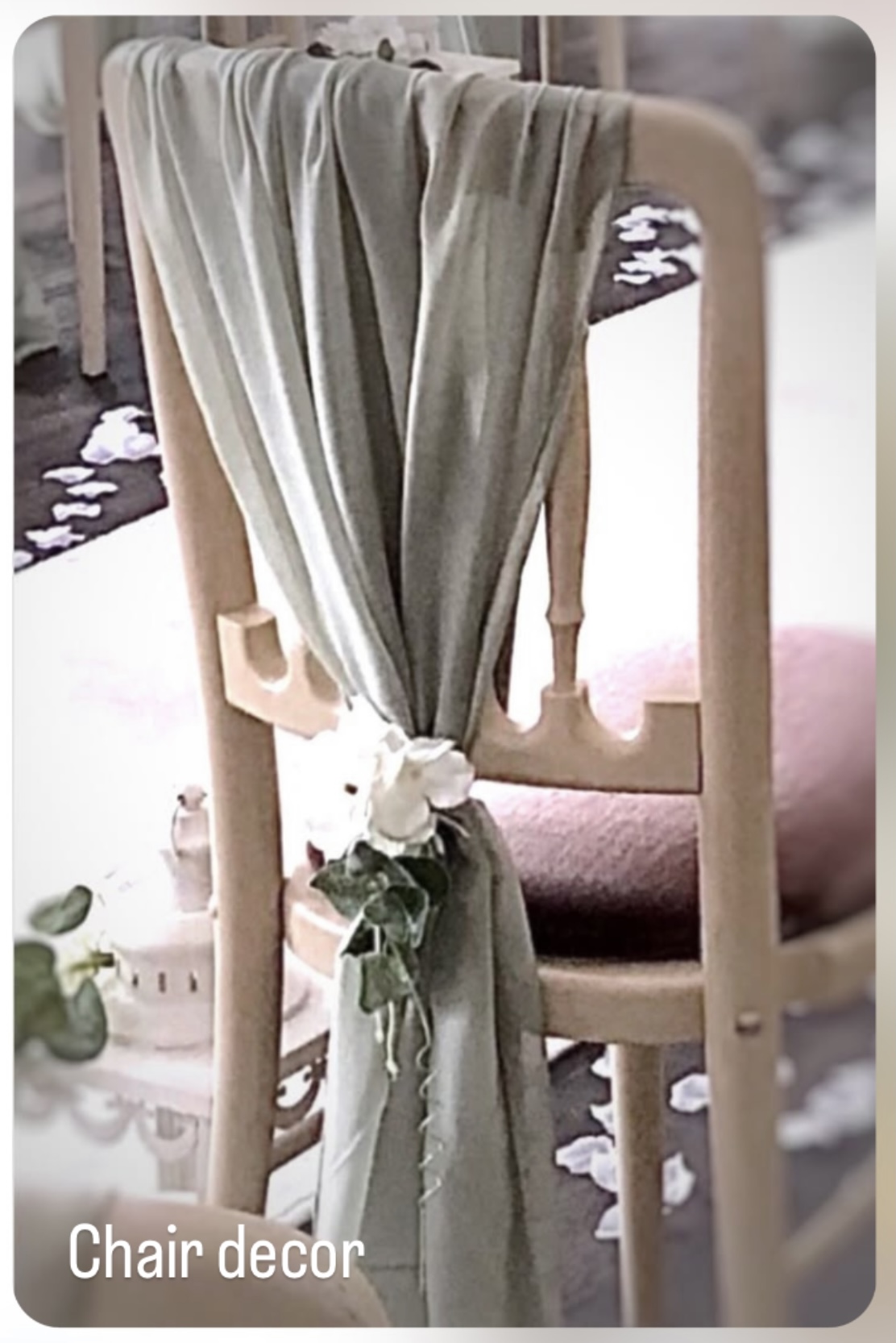 Our wedding chair covers can be combined with the sash or hood of your choice and finished with tails, flowers, lace or diamanté buckles. Chair covers will give a feel of opulence and ceremony.