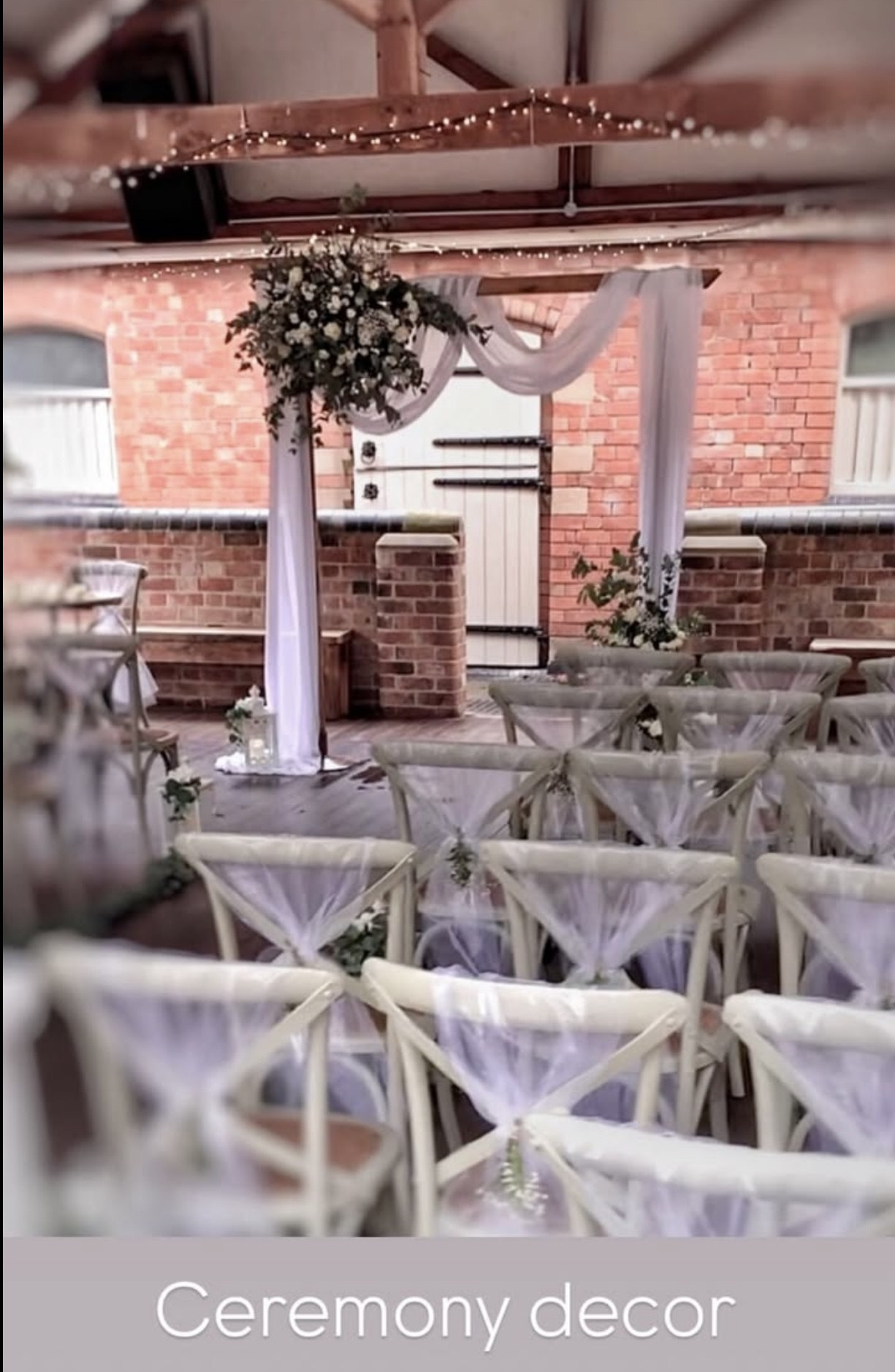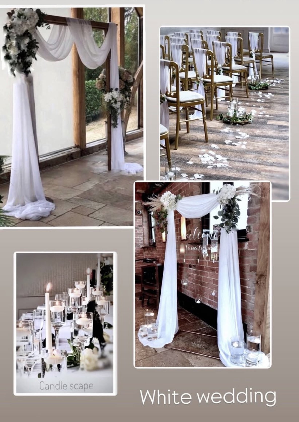 Our stunning rustic backdrop, can be draped with vintage lace, bridal lace or swagged with flowing white or blush pink chiffon price £150.00.