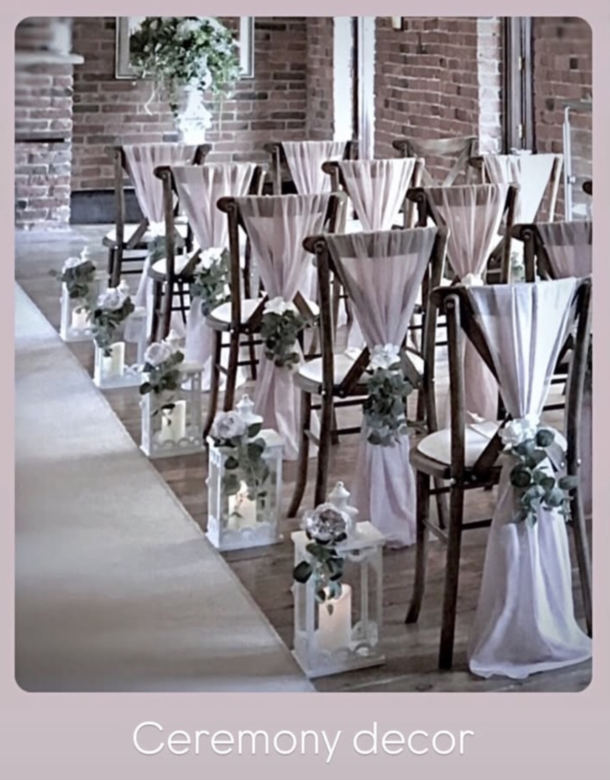 So classy, using our vintage lace copper pipe backdrop, teamed with our pretty lace chair hoods