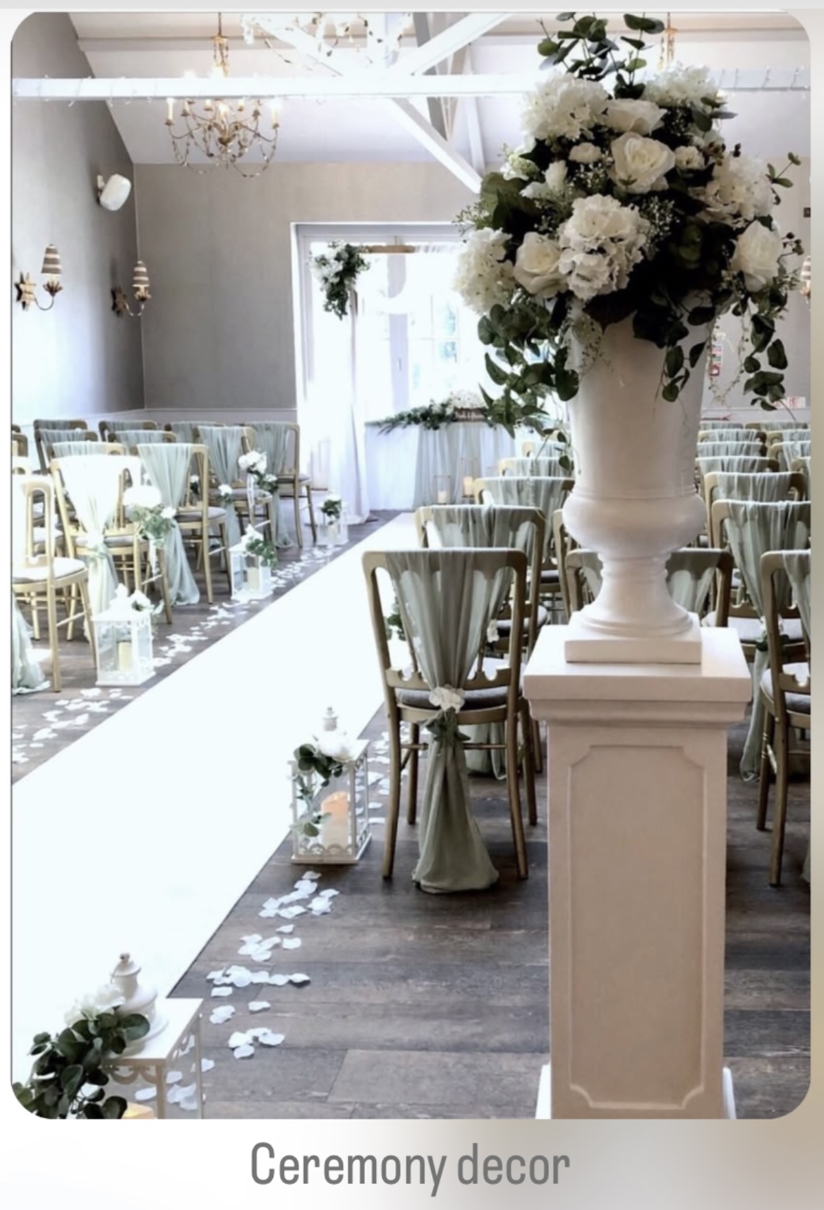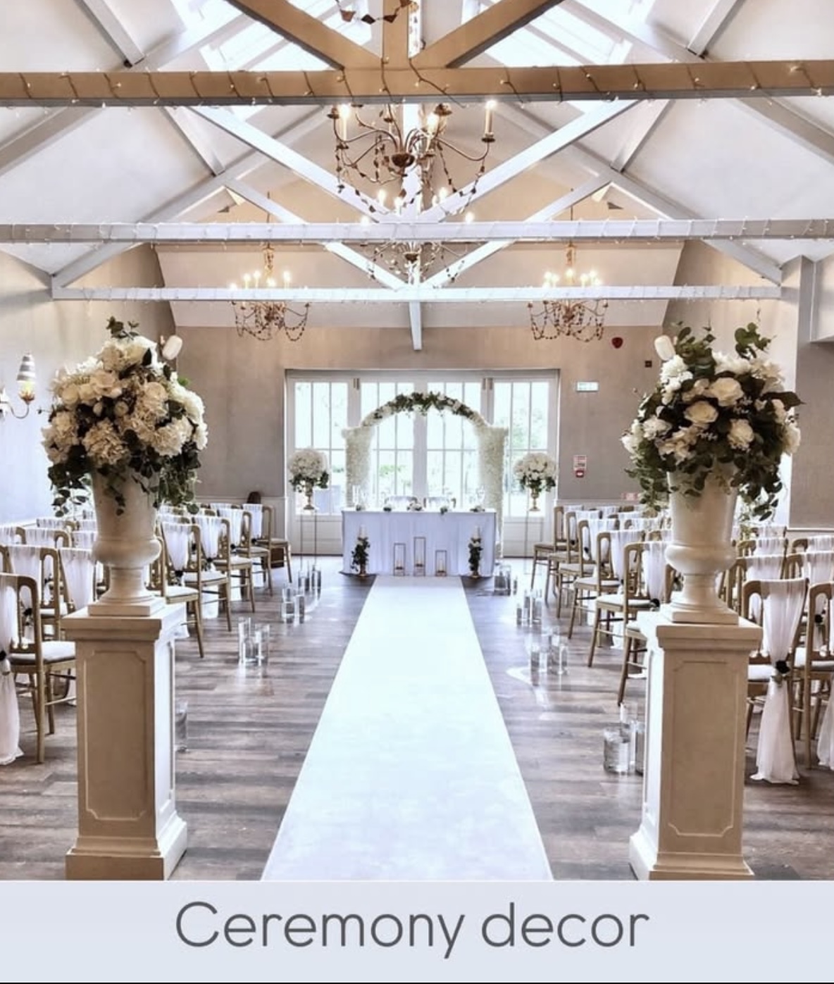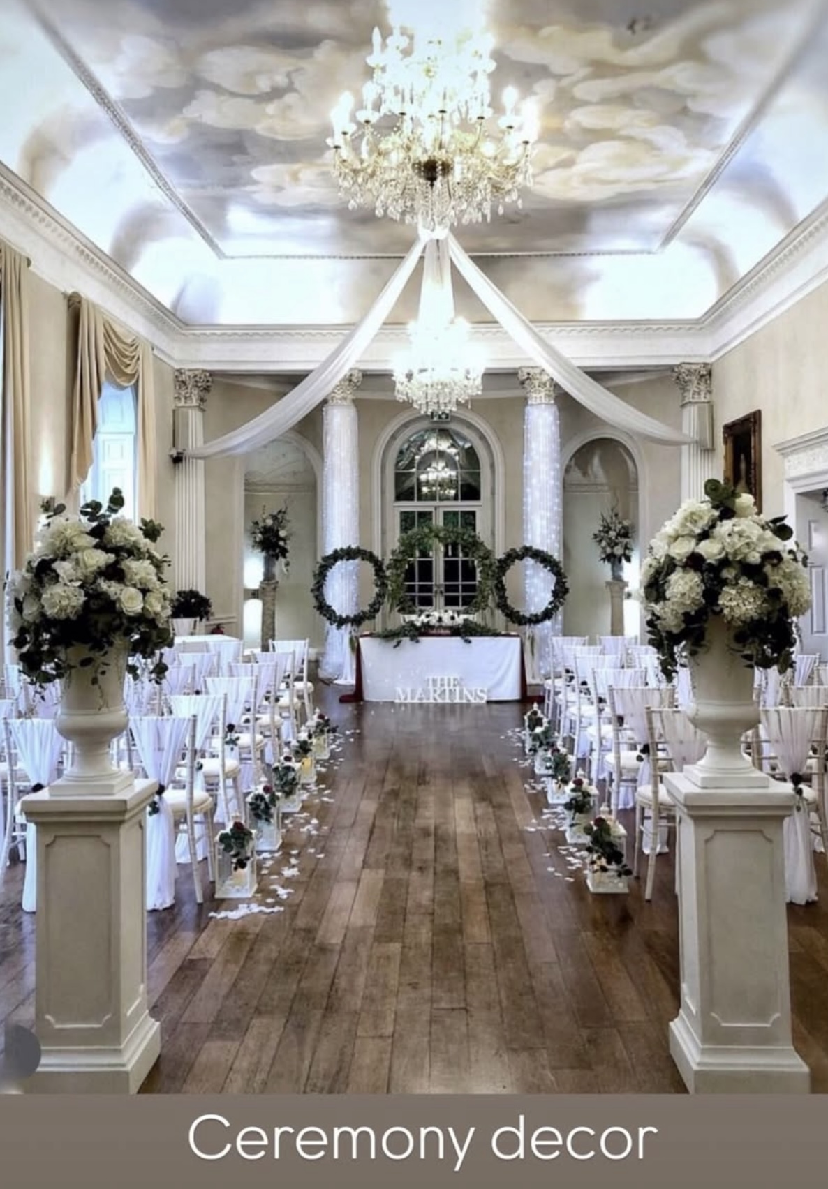 Our stunning silver urns complete with over flowing floral's , teamed with our tall pedestal's